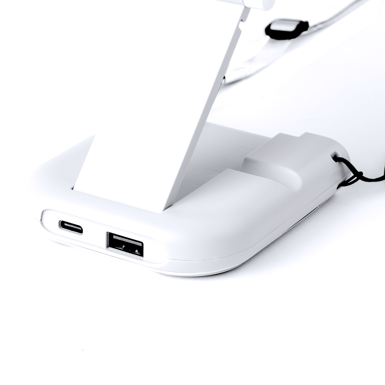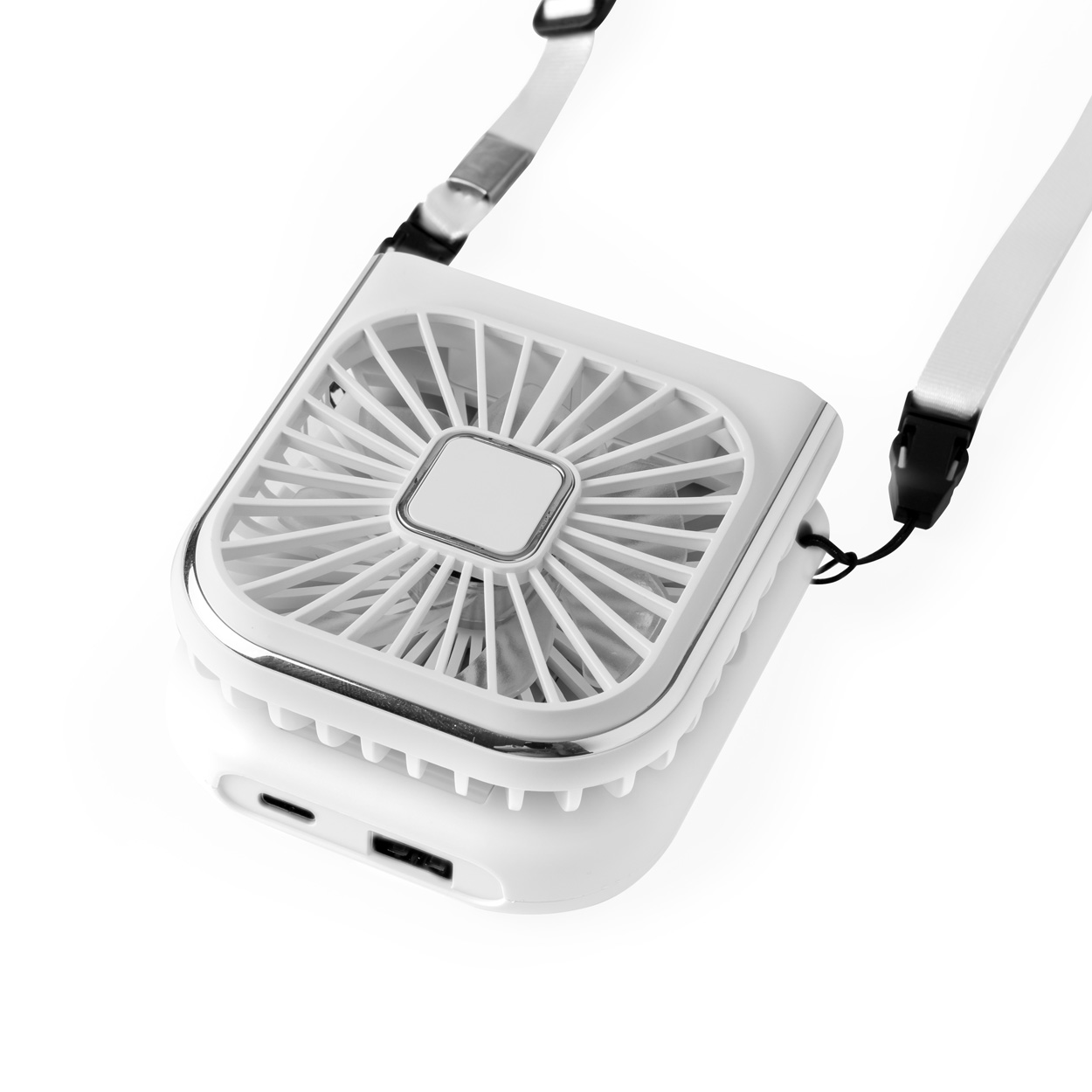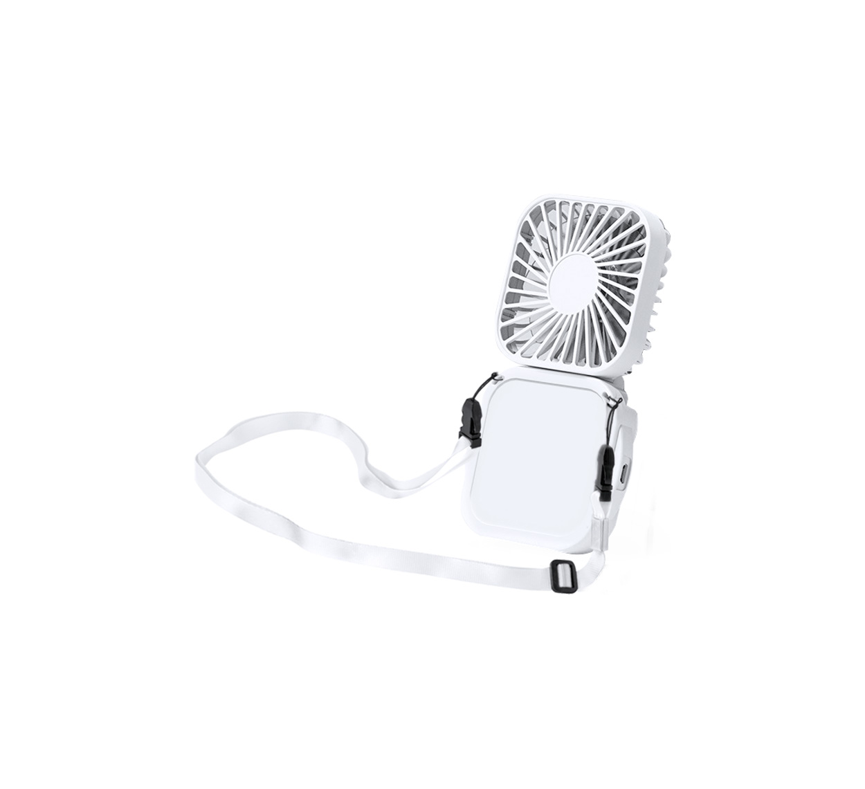 Skládací elektrický větráček z ABS plastu se 3 režimy, držákem na mobil a provázkem. Micro USB nabíjecí kabel součástí balení.