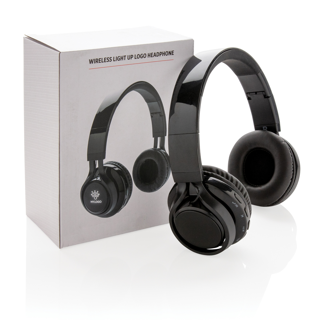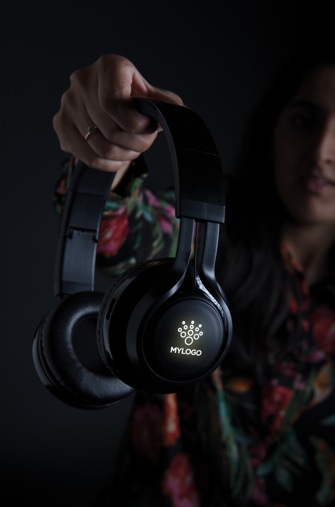 Přizpůsobte si bezdrátová sluchátka originálním gravírem, jehož vzor se po zapnutí rozsvítí a vaše logo tak stylově zvýrazní. Sluchátka využívají BT 4.2 pro hladké bezdrátové připojení na vzdálenost až 10m. Zabudovaná 400 mAh baterie umožňuje poslech až po dobu 4 hodin na jedno nabití (plné nabití za 2 hodiny). S mikrofonem a funkcí přijetí hovoru. AUX kabel v balení.